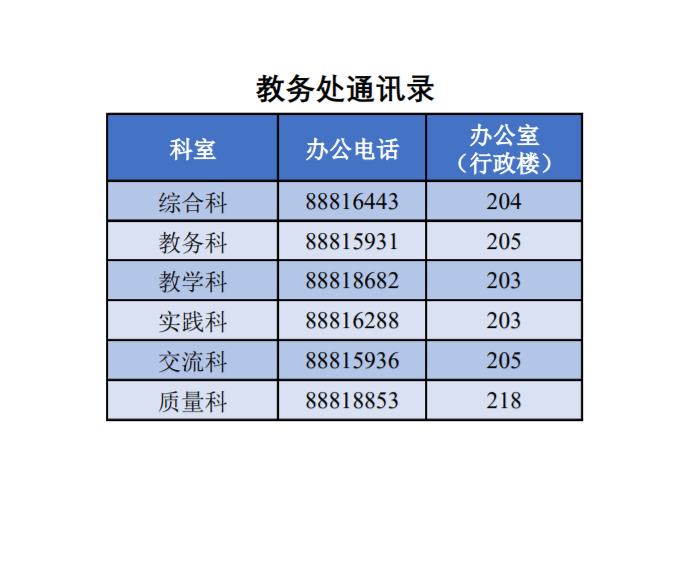 教务处科室通讯录