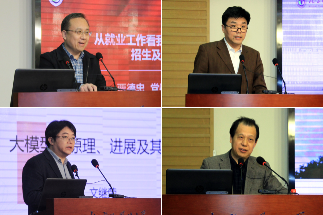 贾德忠以学生就业为切入点,分享了对学校本科专业设置、招生及世界杯官网工作的思考。要数据驱动,推进“招、培、就、管、服”联动;就业育人,推进用人单位、校友“全链条”参与培养过程;海外实践,提升学生国际视野;厚植家国情怀,引导学生服务国家战略发展亟需;推进“五育”并举,促进学生全面发展;用好全球语言服务平台,做好学生就业兜底保障。赵刚围绕以高水平科研助力北外“金本科”建设,提出科研聚焦新的世界杯官网需求,以有组织的科研支撑世界杯官网的新需求,以知识体系创新服务于世界杯官网,以科研反哺教学的意识和能力,以浓厚的学术氛围培养学生的学术兴趣。中国人民大学信息学院院长、高瓴人工智能学院执行院长文继荣探讨了ChatGPT带来的挑战和机遇,详细介绍了ChatGPT的发展背景和原理以及中国团队的努力和创新。